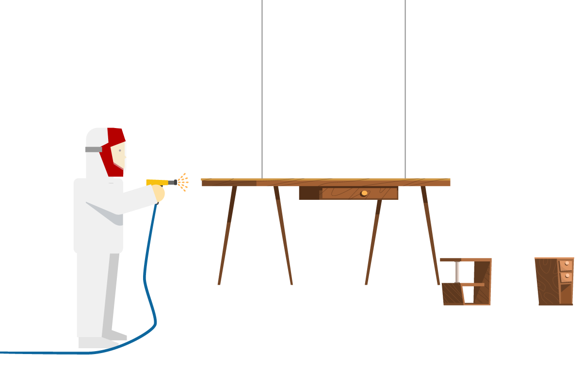 At LAKGRUPPEN we have the ideal solutions for industrial painting, our products range from small to large-scale wood application. We can customize a solution according to you needs. If you need full flexibility versatile incoming projects, we recommend a mixing system with a lower flow rate, to ensure your customers a quick response time.